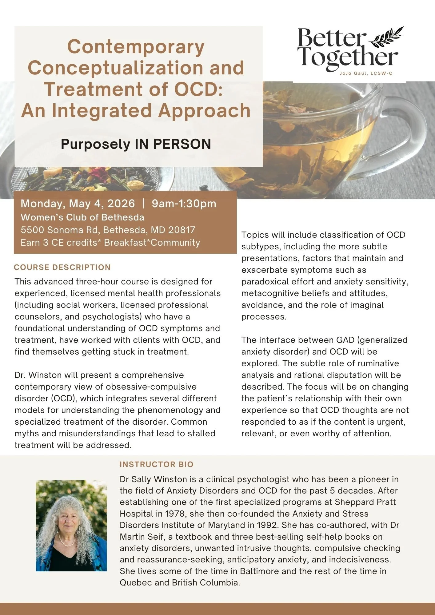CEs for May 4th OCD training provided by Maryland Psychological Association (MPA),ACE ASWB, and NBCC.